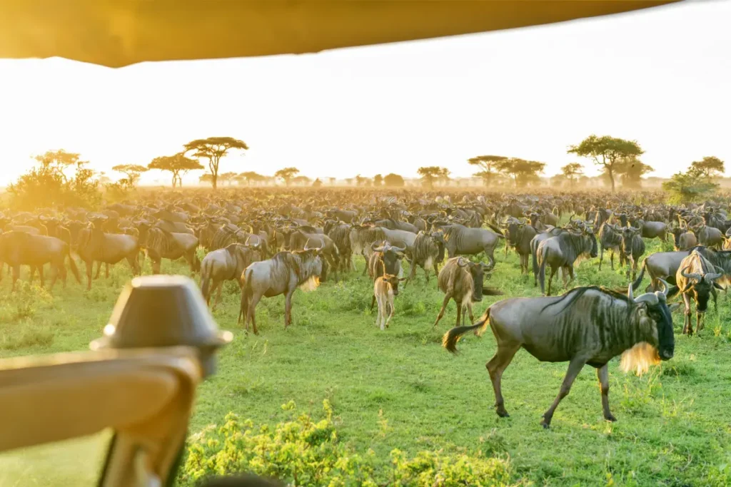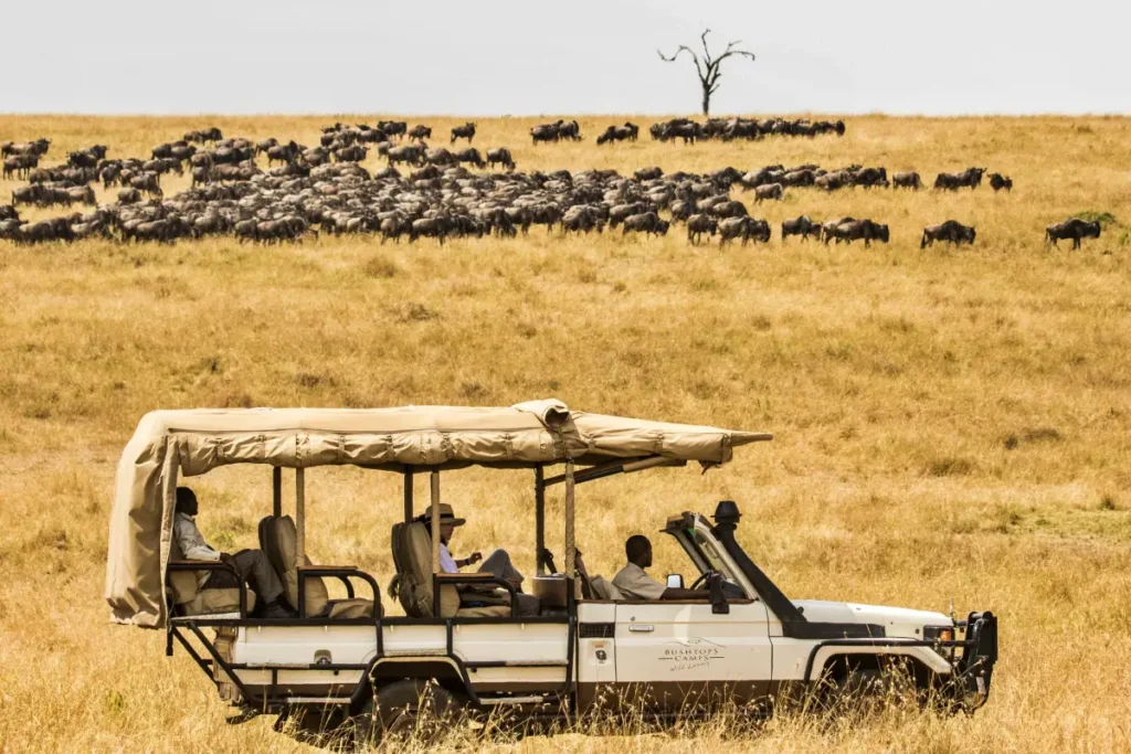 Wildebeest Migration Mara safari takes you to Masai Mara National Reserve at the Mara River where the action of the action of wildebeests, zebras, topis, gazelles and impalas are seen live crossing the river. The destination is best experienced in a 4×4 safari van with a pop-up roof for further game viewing. Experience adventure in the wilderness.